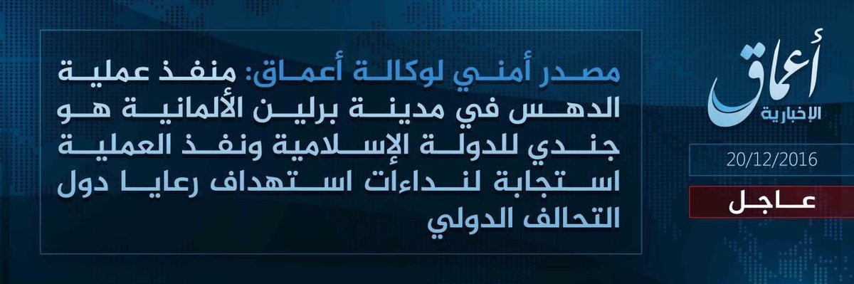 „Żołnierz Państwa Islamskiego przeprowadził operację w Berlinie w odpowiedzi na wezwania do ataków na obywateli krajów międzynarodowej koalicji” walczącej z IS – głosi oświadczenie związanej z dżihadystami agencji prasowej Amak.