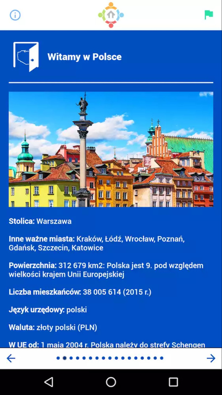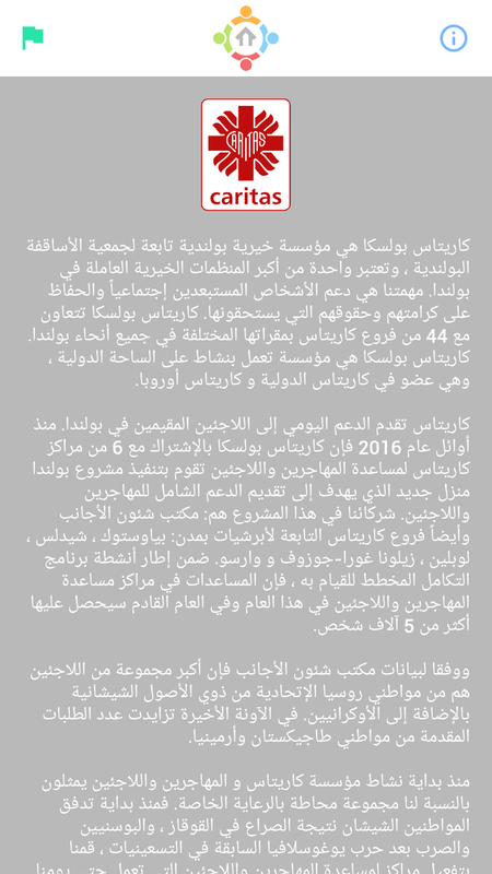 W aplikacji są przydatne informacje na temat miejsc, w których obcokrajowcy znajdą pomoc. Jak pisze Caritas Polska na swojej stronie internetowej „pomoc w sześciu wyspecjalizowanych placówkach pomocy migrantom i uchodźcom Caritas otrzymuje rocznie ok. 2000 osób. W obliczu wzrastającej liczby osób uciekających przed wojną i szukających schronienia na terenie Polski Caritas wychodzi im naprzeciw, proponując innowacyjną formę pomocy”.