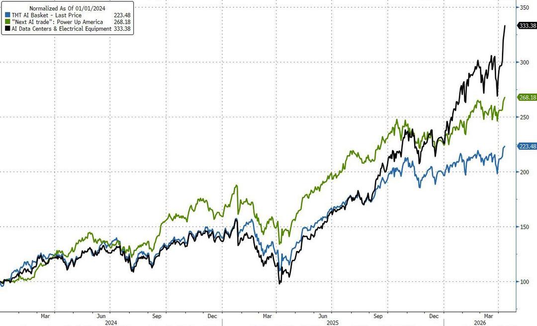 Jednak, jak widać na poniższym wykresie, po prześcignięciu centrów danych AI i koszyków AI TMT w 2024 r. i przez większą część 2025 r., handel Power Up America pozostał w tyle i wyraźnie nie osiągnął wyników, ponieważ niektórzy inwestorzy zaczęli wyrażać wątpliwości, czy USA kiedykolwiek będą w stanie „wzrosnąć” do swoich ogromnych potrzeb w zakresie obliczeń AI… z tragicznymi konsekwencjami dla rekordowych budżetów inwestycyjnych w AI, czego rynek jeszcze nie zrozumiał.