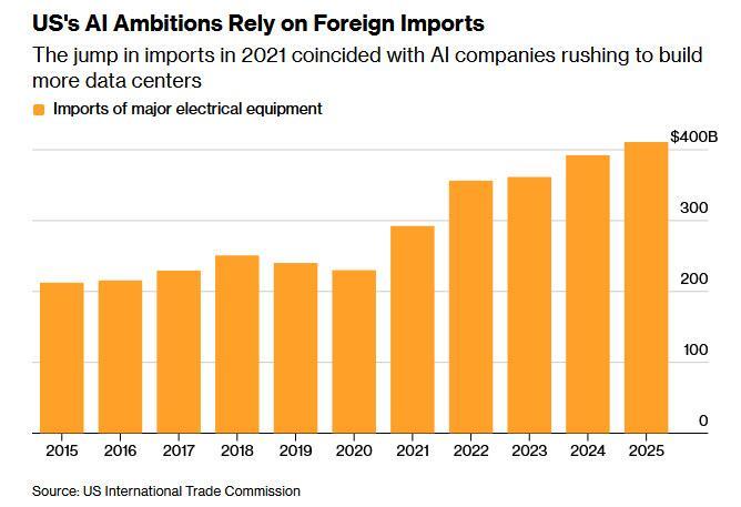 W tym miejscu Bloomberg ponownie cytuje dane Sightline, zauważając, że „ prawie połowa amerykańskich centrów danych planowanych na ten rok prawdopodobnie zostanie opóźniona lub odwołana ”, a jako jeden z głównych powodów opóźnienia Bloomberg podaje niedobór sprzętu elektrycznego, takiego jak transformatory, rozdzielnice i akumulatory: „ Są one potrzebne nie tylko do zasilania sztucznej inteligencji, ale także do budowy sieci, która odnotowuje wzrost zużycia energii przez samochody elektryczne i pompy ciepła. Amerykańskie moce produkcyjne w zakresie tych urządzeń nie nadążają za popytem, a niedobory spowodowały, że producenci centrów danych są uzależnieni od importu”.